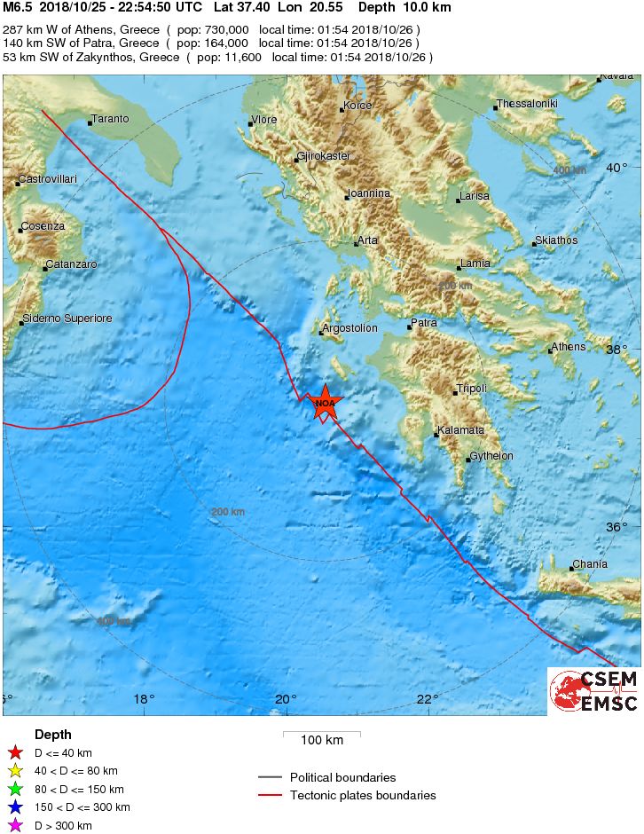 Mάλιστα το αμερικανικό γεωλογικό ινστιτούτο USGS δίνει 6,9 Ρίχτερ. Σύμφωνα με την ίδια πηγή, το επίκεντρο του σεισμού εντοπίστηκε 124 χιλιόμετρα νοτιοδυτικά της Πάτρας.