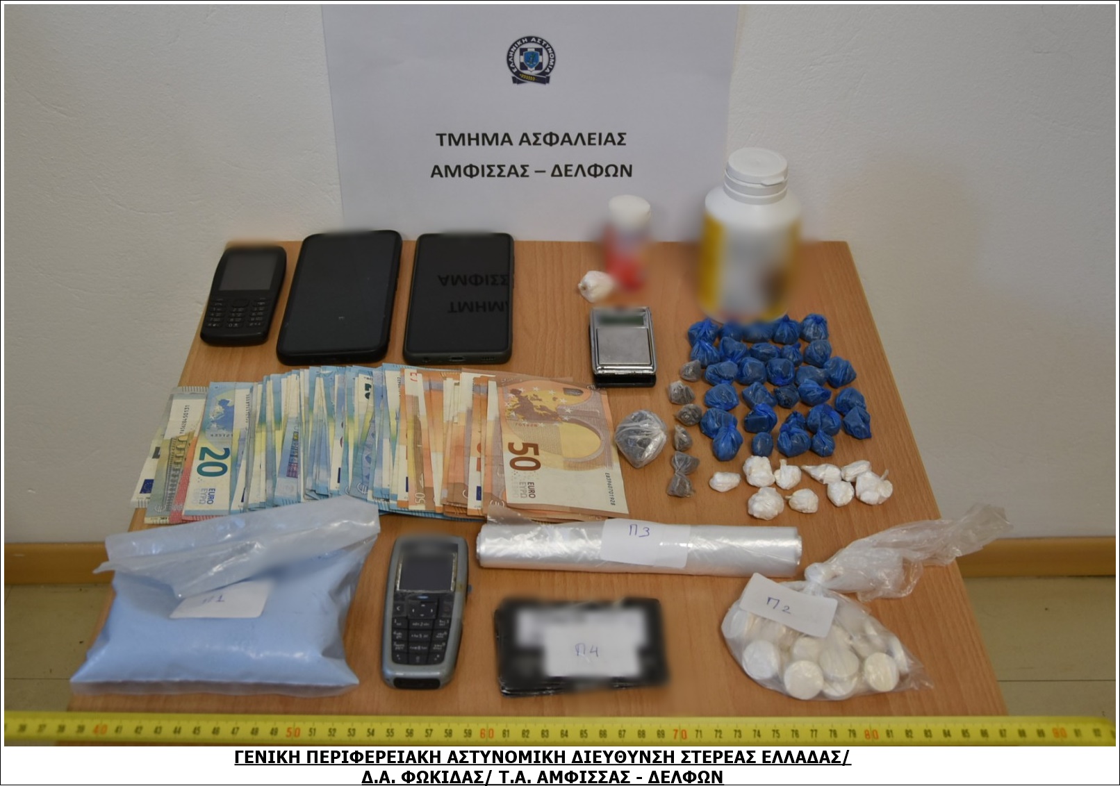 Ειδικότερα, μετά από κατάλληλη αξιοποίηση πληροφοριακών στοιχείων σχετικά με διακίνηση ναρκωτικών ουσιών από τους ανωτέρω, εντοπίστηκαν επιμελώς κρυμμένες στον περιβάλλοντα χώρο της κατοικίας τους στον καταυλισμό έξω από την Άμφισσα και κατασχέθηκαν, νάιλον συσκευασίες που περιείχαν: